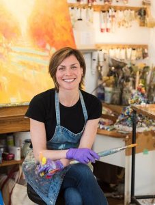 DESCRIPTION: While writers use words, Cameron Schmitz uses color and mark-making as her language of expression. She states, “Dashes of paint and gestural strokes tell a story— orchestrated by movement, intuition, and the shifting of time.