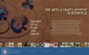 In addition, special exhibits focus with more detail on specific historical events or topics: Turns of the Centuries, Raid on Deerfield: The Many Stories of 1704, Shays’ Rebellion and the Making of a Nation, African Americans in Early Rural New England, and Map to African American Historic Sites. The Arts & Crafts Moment in Deerfield parallels the publication of Poetry to the Earth: The Arts & Crafts Movement in Deerfield, by Suzanne L. Flynt, available here.
