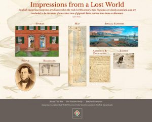 The most recent of our educational websites, “Impressions from a Lost World,” focuses on the history of the 19th-century discovery of dinosaur tracks in the Connecticut River Valley (before the word “dinosaur” was even used). Visit dinotracksdiscovery.org here!